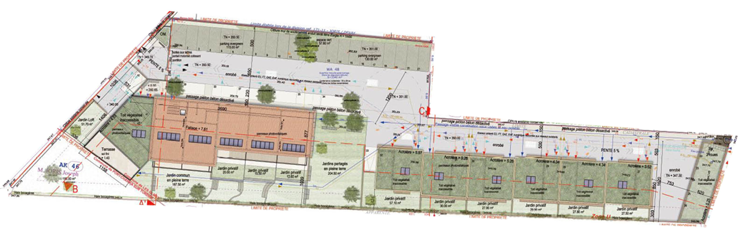 Nous vous présentons un projet résidentiel composé de plusieurs maisons, conçu comme un ensemble harmonieux et convivial, favorisant la qualité de vie, la fonctionnalité et l’intégration dans son environnement.