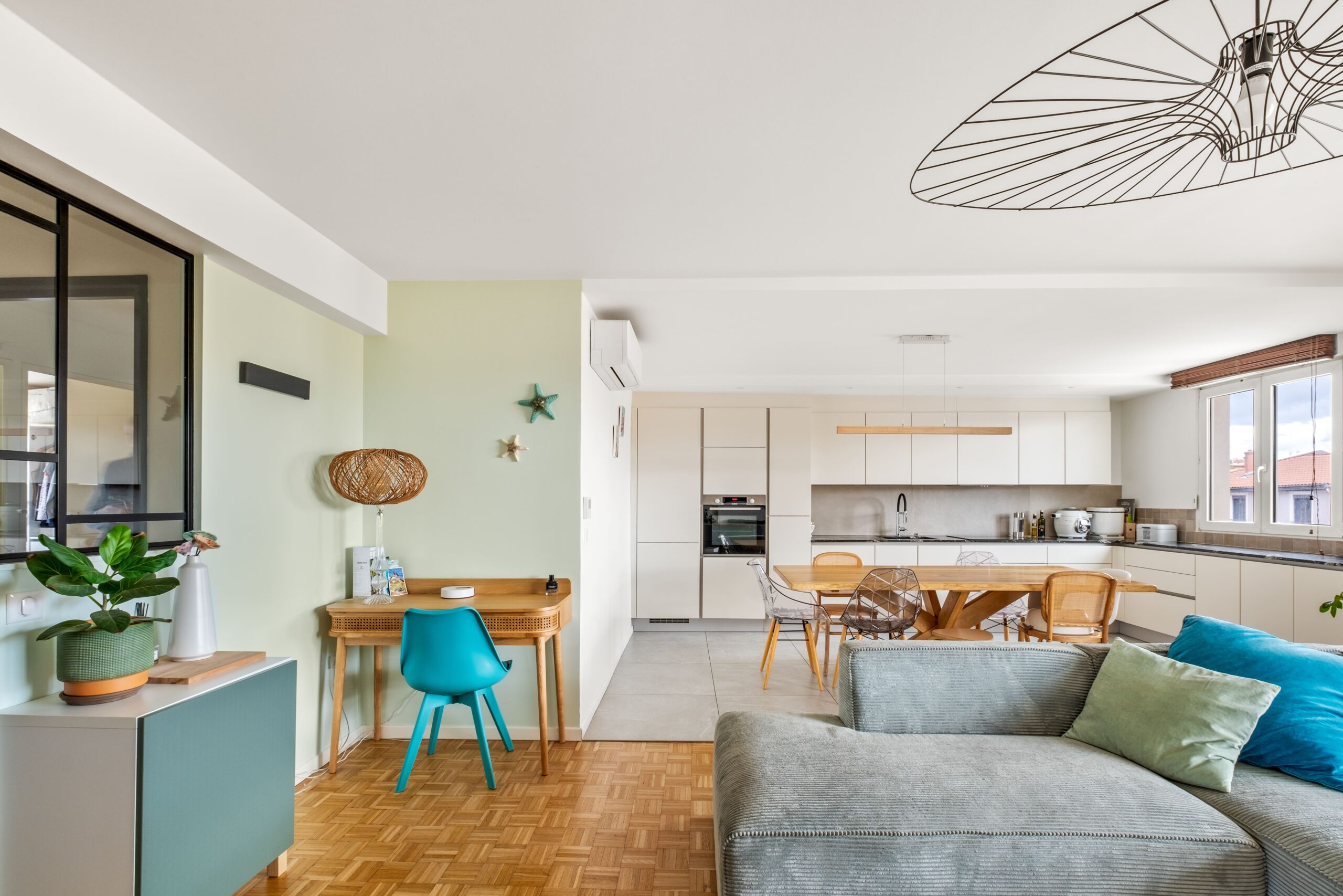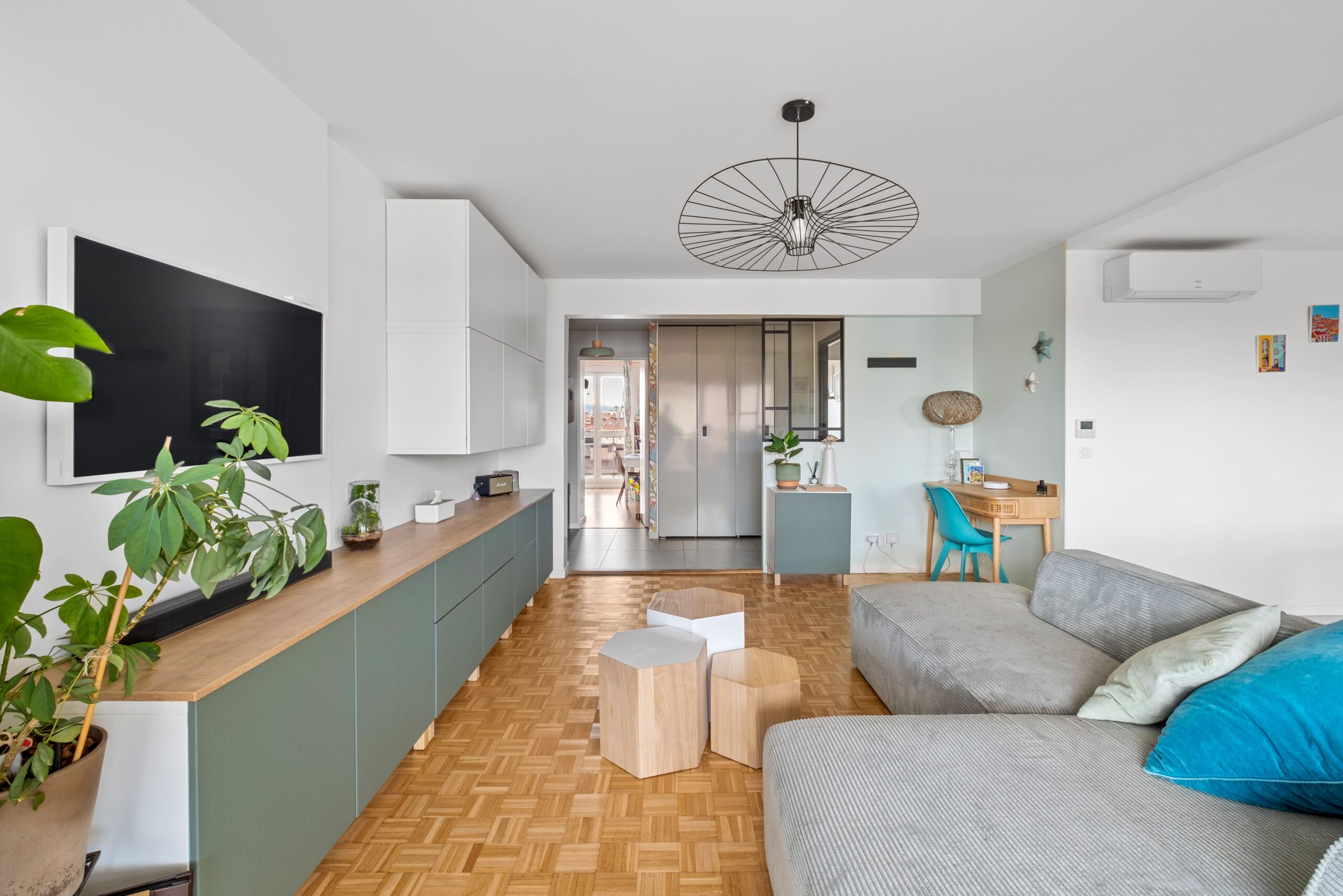 Nous vous présentons un projet abouti de rénovation intérieure d’un appartement en ville, pensé pour optimiser les volumes existants et offrir un cadre de vie à la fois fonctionnel, moderne et élégant.