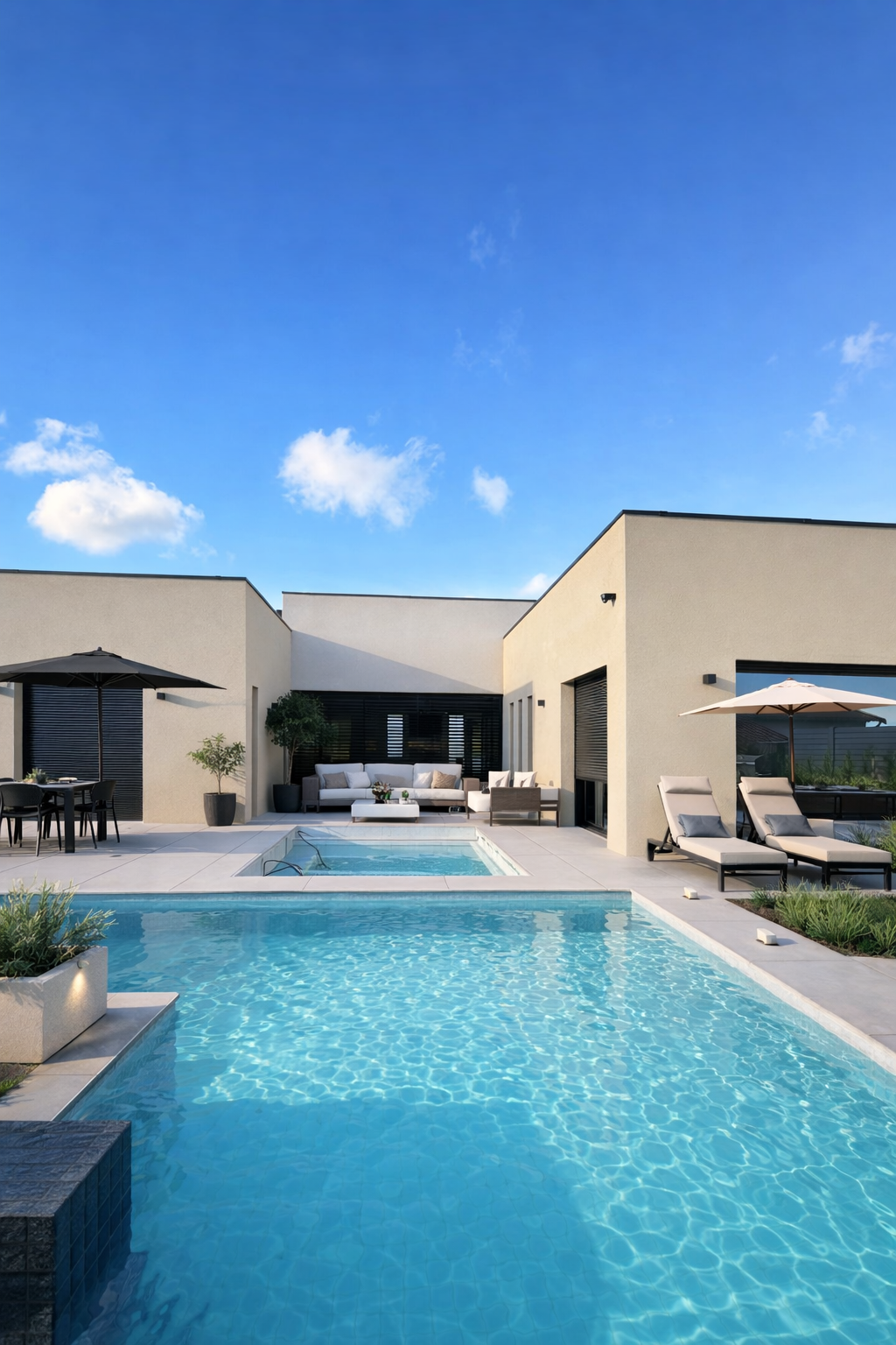 Réalisation complète de deux maisons individuelles avec piscines, alliant architecture, design d’intérieur et optimisation des espaces pour créer des lieux de vie modernes, confortables et parfaitement harmonisés entre intérieur et extérieur.